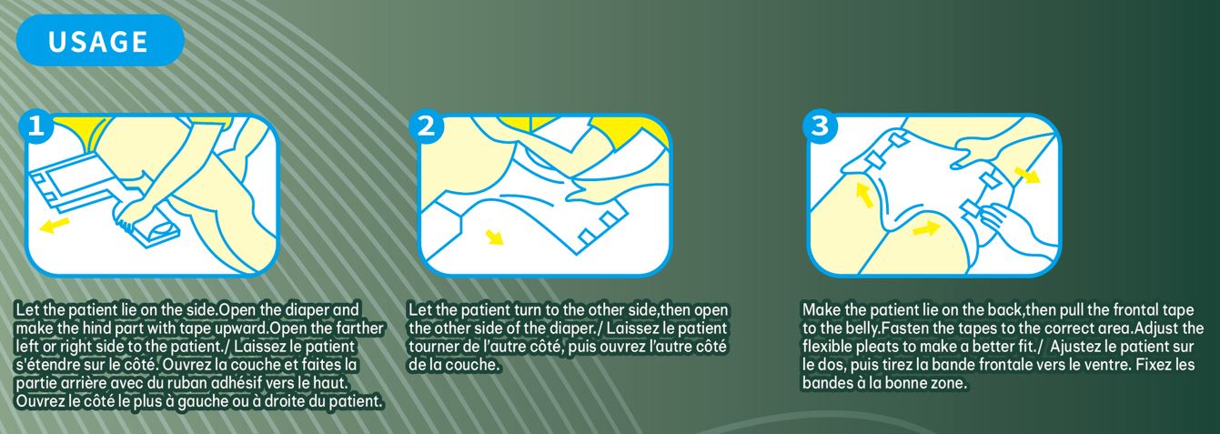 fluid away from the skin, ensuring dryness and comfort. Designed with anti-leak barriers, these incontinence diapers offer a discreet, garment-like fit and a natural feel for confidence and peace of mind.