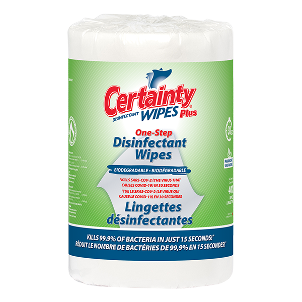 Biodegradable Plus Disinfectant Wipes (1000 count) – high-performance disinfectant/sanitizing wipes for professional healthcare use. Our premium Certainty® Plus Disinfectant Wipes are designed to combat germs, viruses and fungi found on all hard, non-porous surfaces. They quickly remove dirt and soil from all touch points while promoting a healthy environment and preventing the risk of cross contamination. Ideal for fitness centers, offices, grocery stores, and more.